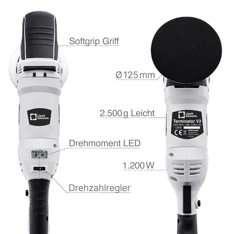 Das geringe Gewicht von nur 2,4 kg und die lange Kabellänge von 8 Metern sorgen für eine komfortable und flexible Handhabung. Diese Eigenschaften machen die Terminator V2 zu einer bevorzugten Wahl für Profis und Hobby-Autopfleger gleichermaßen.